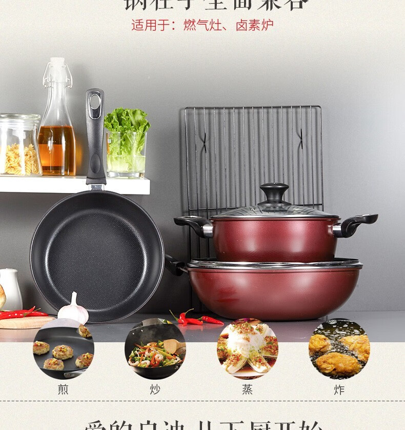 訂購:JOHNBOSS炫彩鍋具三件套 煎炒鍋平底鍋 燉煮湯鍋HG-T0223